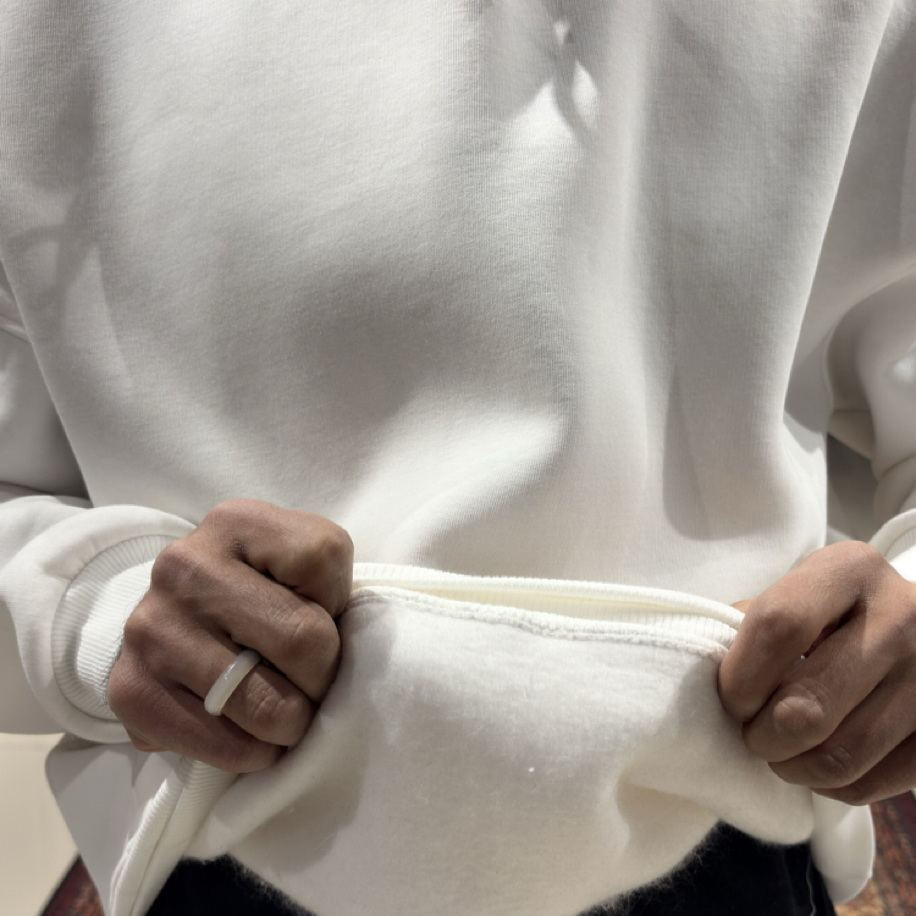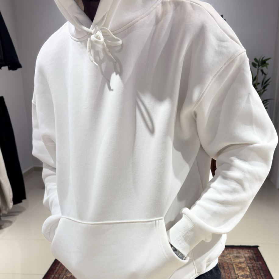Soğuk günlerde tarzından ödün vermeden sıcak kalmak isteyenlerin yeni favorisi burada! 3 iplik şardonlu iç yapısıyla ekstra yumuşak, ekstra sıcak ve maksimum konfor sunan bu beyaz oversize hoodie, minimalizmi modern bir duruşla buluşturuyor.