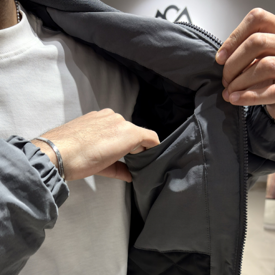 Şıklığı ve konforu aynı anda sunan nakış detaylı kapitone bomber ceket, klasik bomber formuna modern bir dokunuş kazandırıyor. Yüksek kaliteli kapitone kumaşı, soğuk havalarda sıcaklık sağlarken hafif yapısı ile hareket özgürlüğü sunar.