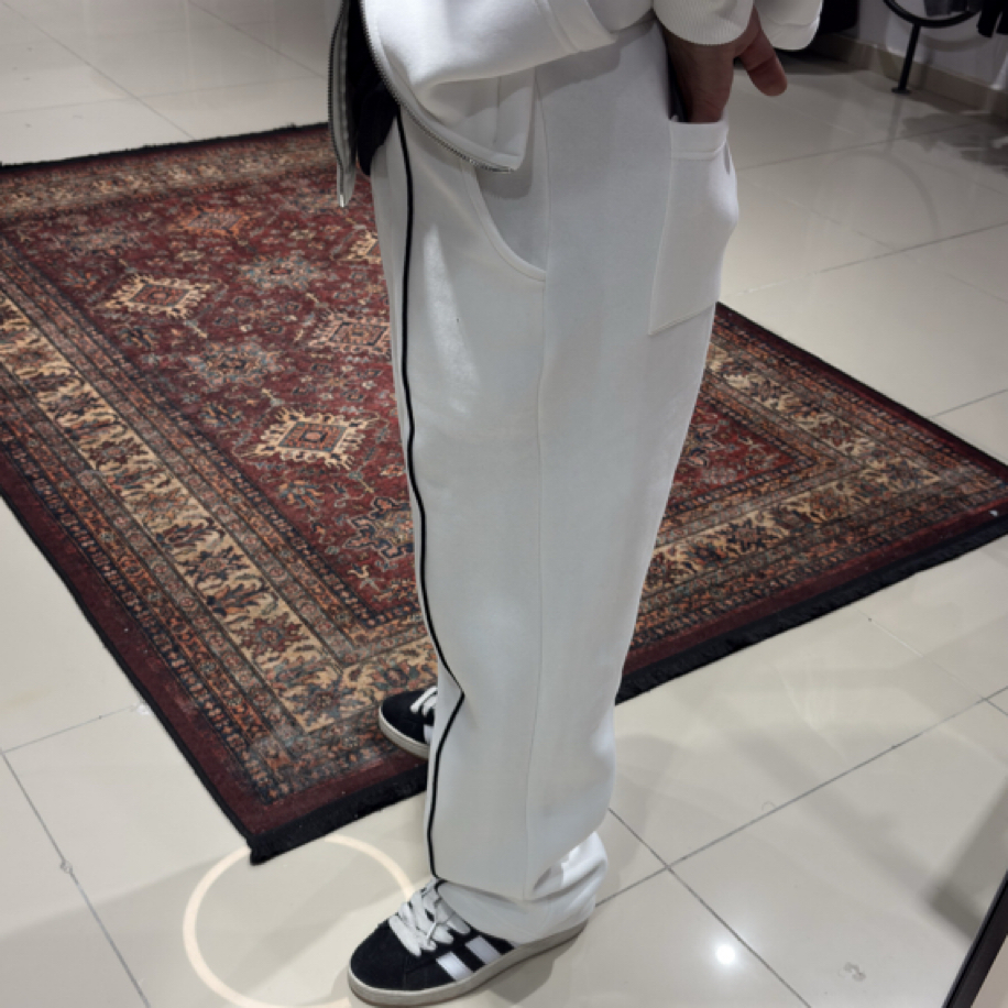 Siyah Şerit Detaylı Fermuarlı Hoodie Set Beyaz