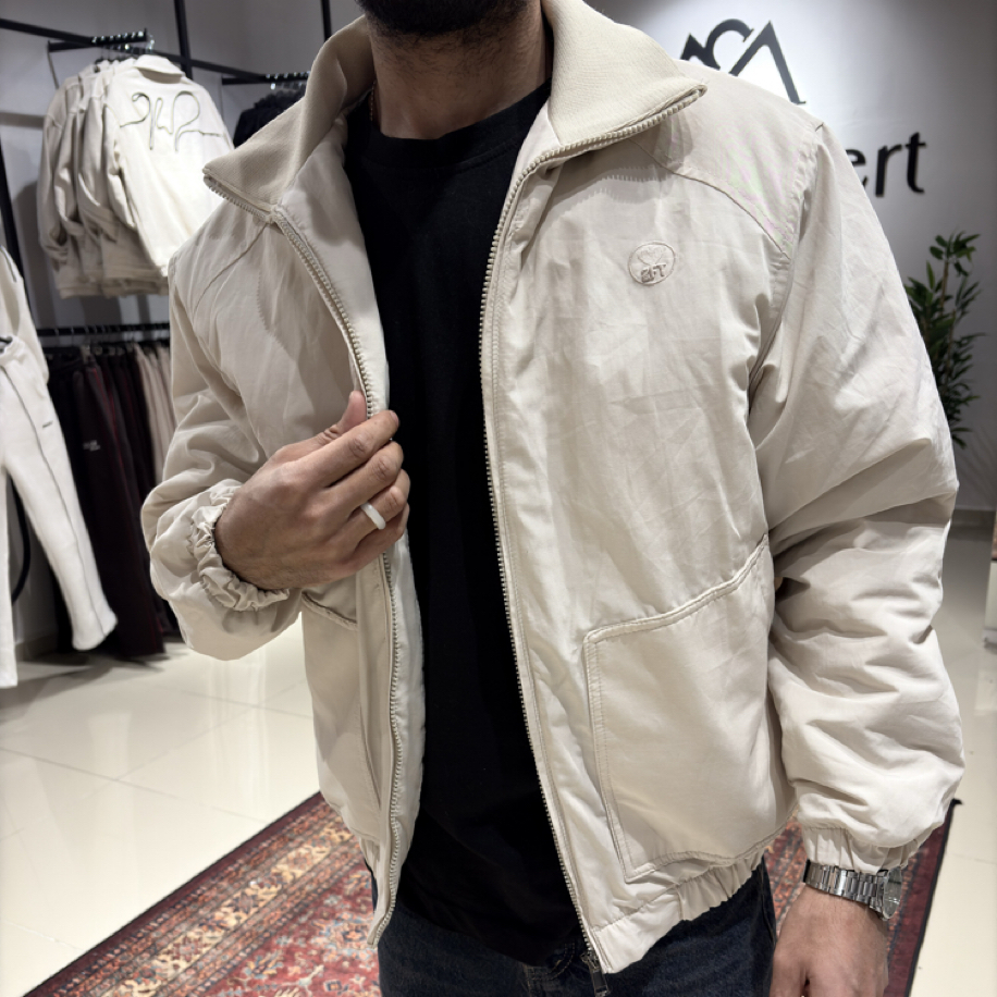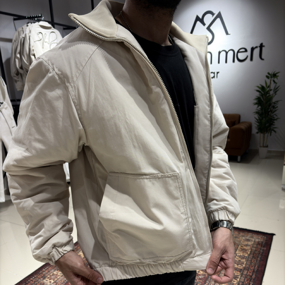 Nakış Detaylı Kapitone Bomber Ceket Bej