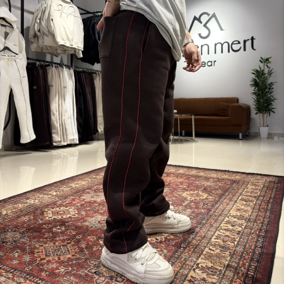 Şerit Ve Nakış Detaylı Baggy Eşofman Acı Kahve