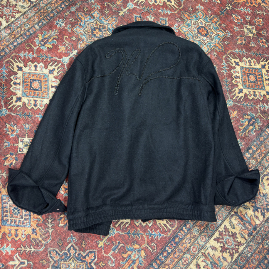 Oversize Nakış Detaylı Kaşe Ceket Siyah