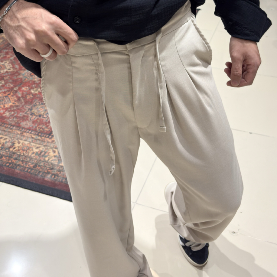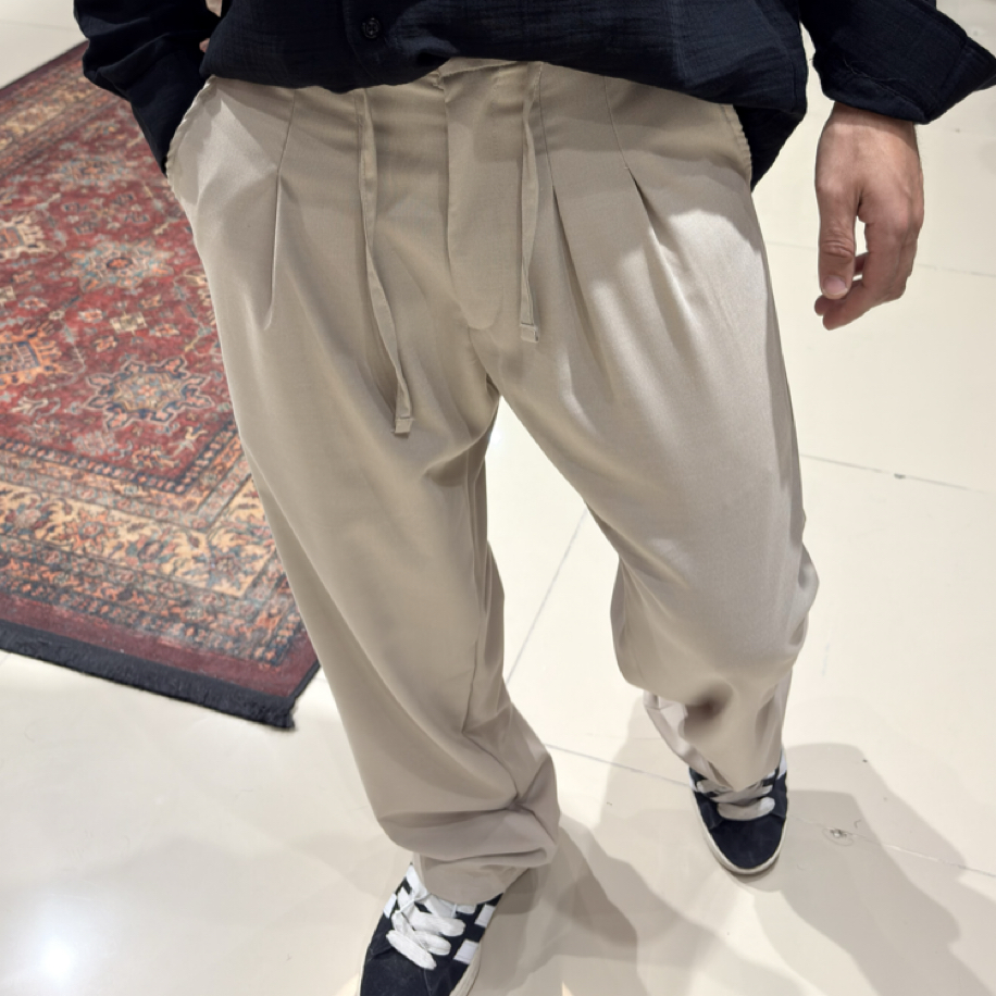 Konforu ve şıklığı bir arada isteyenler için Baggy Kumaş Pileli Pantolon – Bej ideal bir seçim!